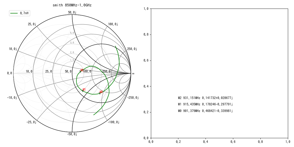 ネットアナ上でsmithを見るとき、マーカーを動かして周波数を確認したりできるが、pyhtonで描画すると、絵は描画されるものの目的の周波数がどこにあるのかわからない。そこでマーカーを表示するようにしたかったが、どうもわからない。