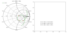 Markerを3個にしてラベルをつけ、subplotで2個横に並べるようにして2つ目に値を書きます。さらに、vswr円の描画と、インピーダンス表示を50Ωにしてみましょう